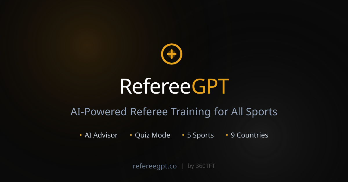Sign in to claimAI referee education tool. Learn the laws of the game through quizzes, scenario analysis, and spaced repetition.