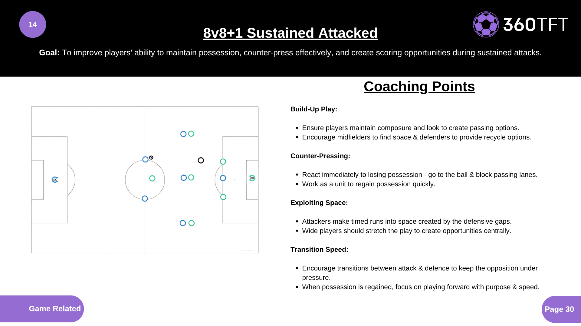 To improve players' ability to maintain possession, counter-press effectively, and create scoring opportunities during sustained attacks.