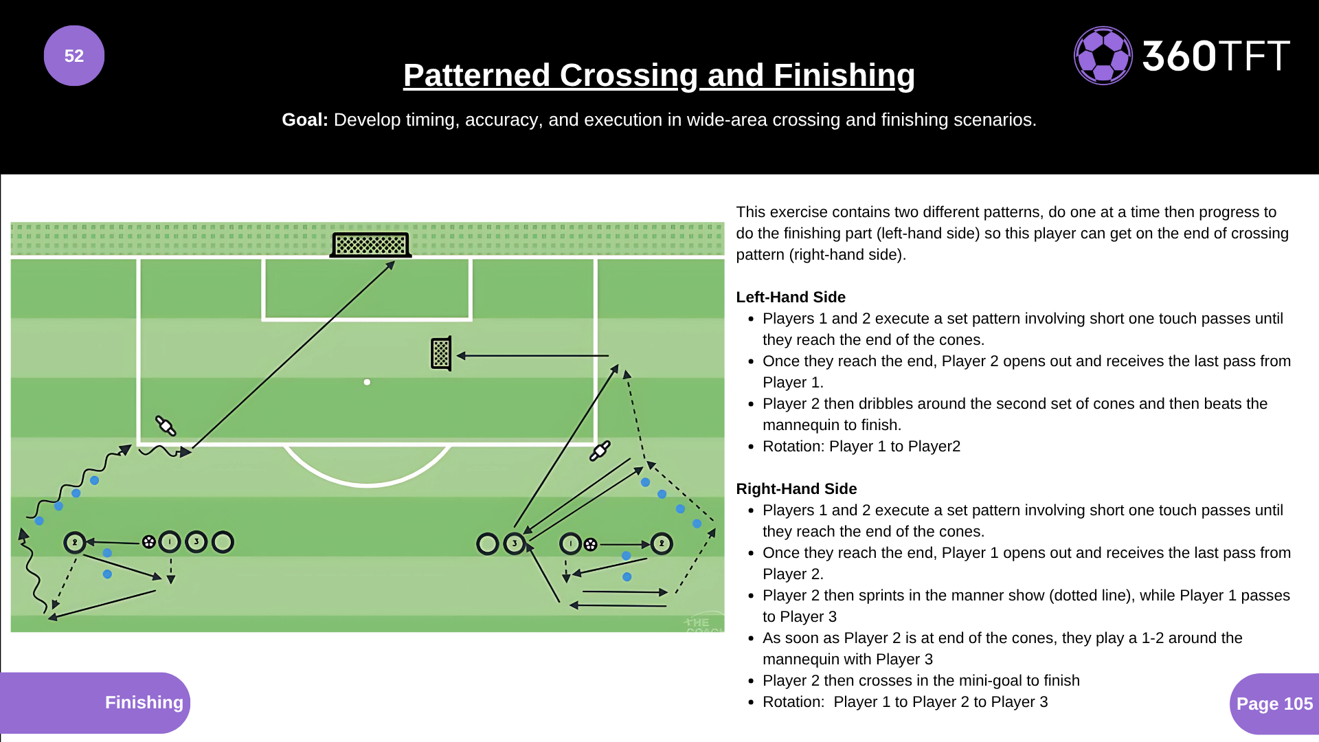 Develop timing, accuracy, and execution in wide-area crossing and finishing scenarios.