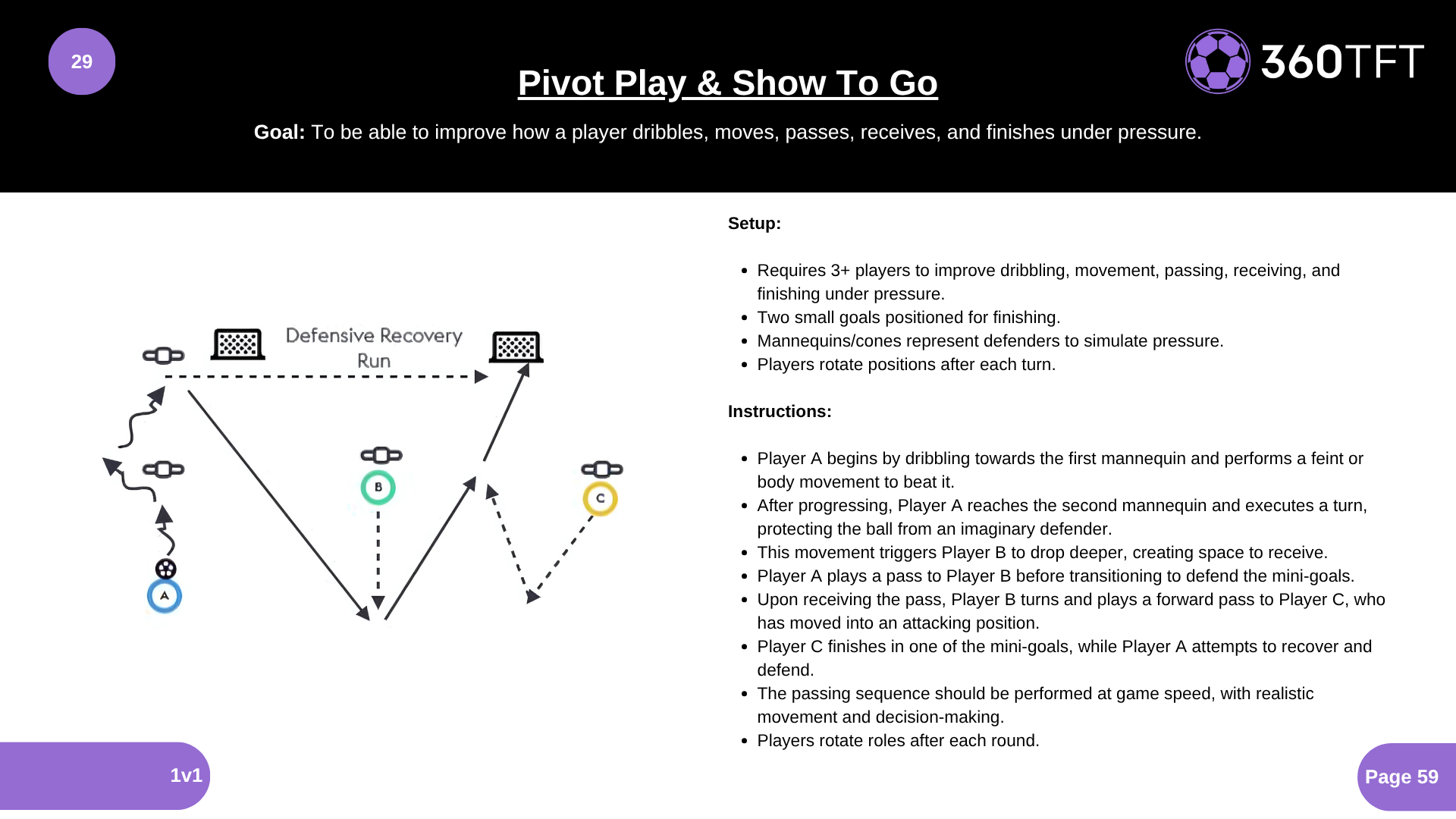To be able to improve how a player dribbles, moves, passes, receives, and finishes under pressure.