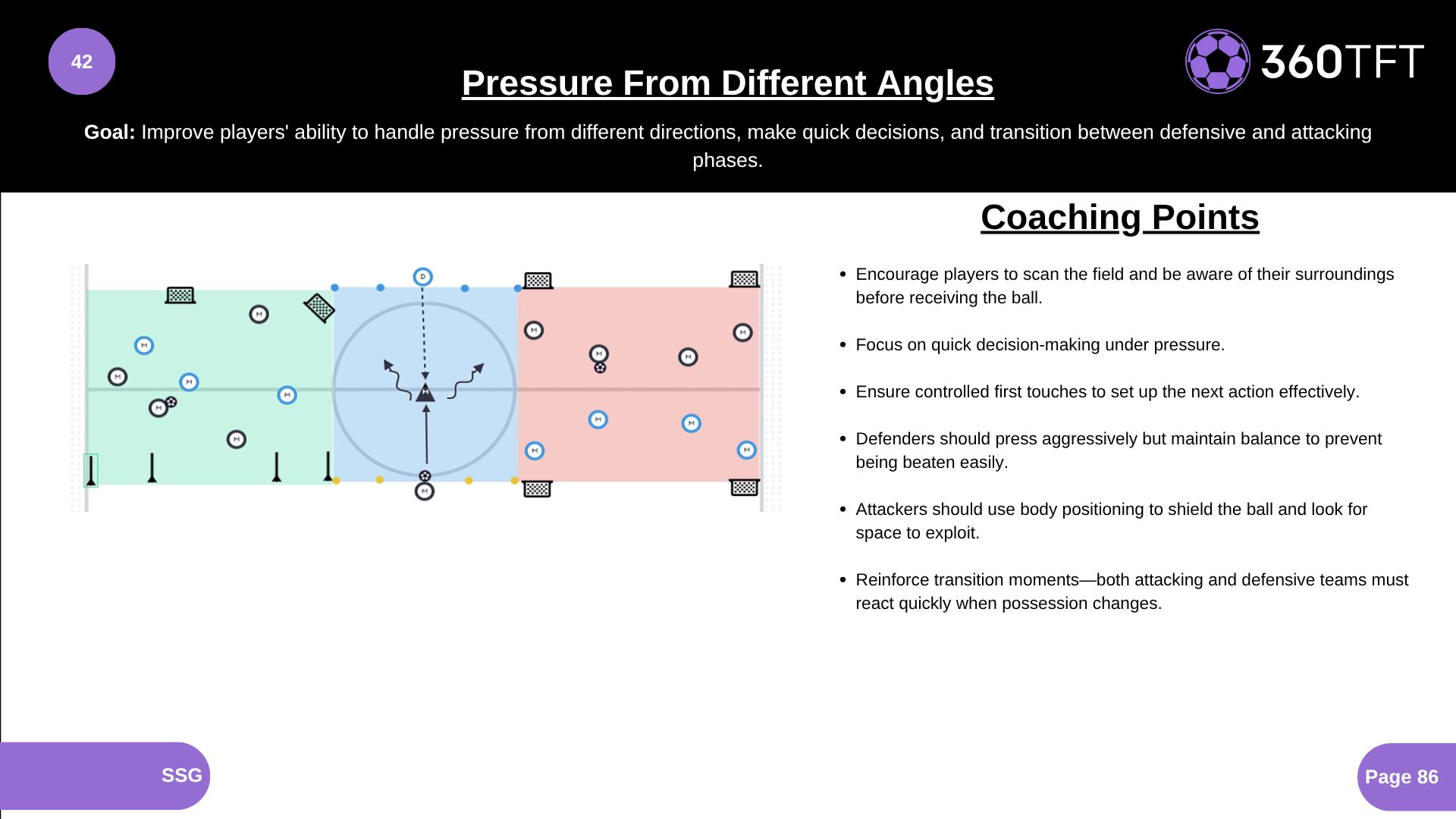 Improve players' ability to handle pressure from different directions, make quick decisions, and transition between defensive and attacking phases.