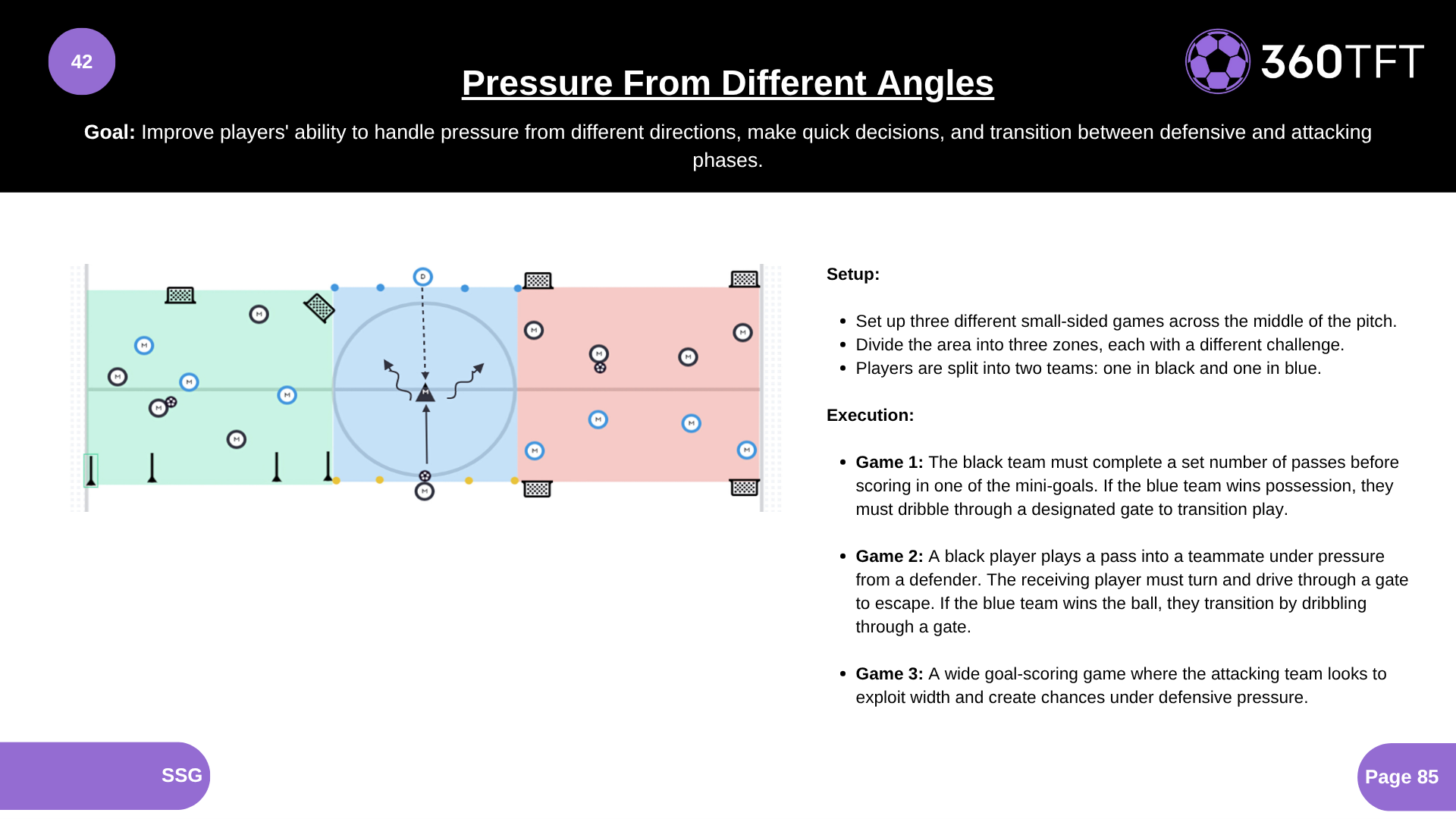 Improve players' ability to handle pressure from different directions, make quick decisions, and transition between defensive and attacking phases.