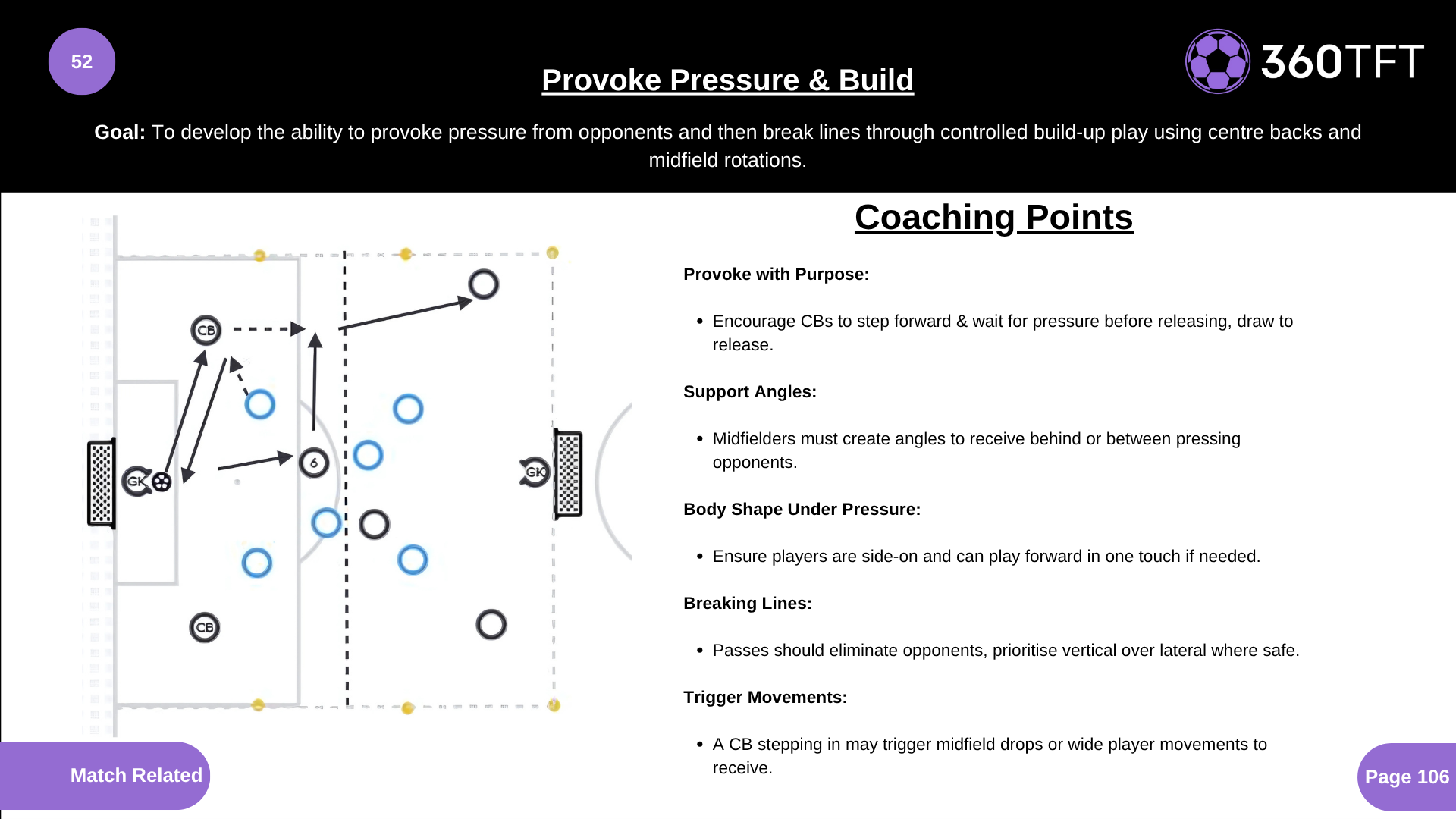 To develop the ability to provoke pressure from opponents and then break lines through controlled build-up play using centre backs and midfield rotations.
