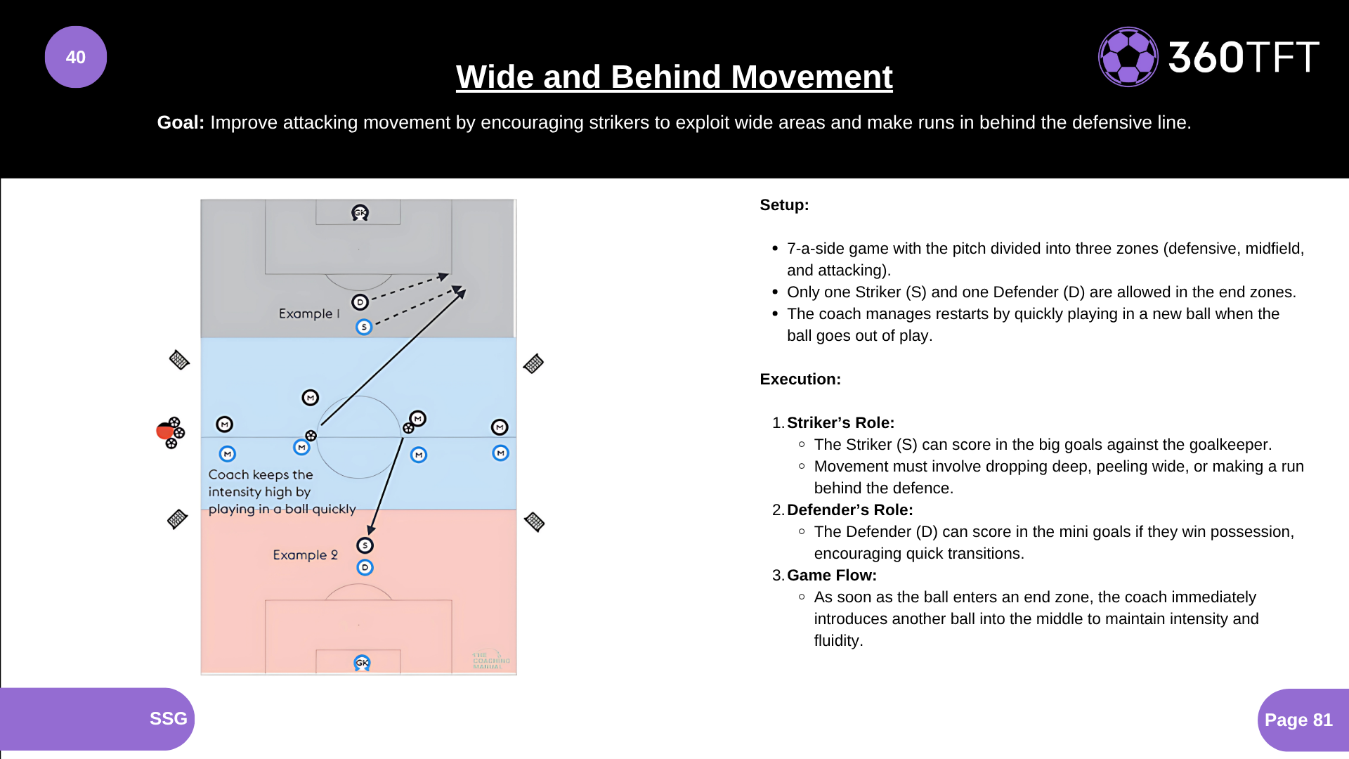 Improve attacking movement by encouraging strikers to exploit wide areas and make runs in behind the defensive line.